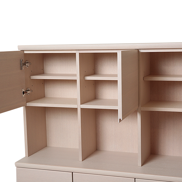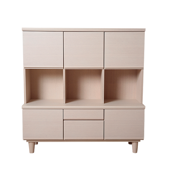 扉・オープンスペース・引き出しと収納多機能ボードです。高さが低めなので子供部屋の収納としてもOK。塗装色選べます。