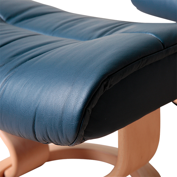 少し派手めの色が似合うスマートなデザイン。コンサルより柔らかさがあります。オットマンの裏側にある4つのプラスチックレバーを内側にスライドさせると、傾斜角度を調整できます。(チルト機能)クッションを水平にしたままレバーを外側に止めるとチルト機能が解除されロックされます。